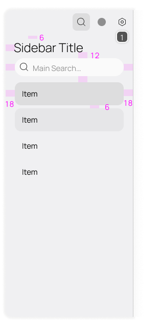 A sidebar is a complementary component in your app, and it has an App Bar of its own on top, and elements below it. It also has a obligatory Sidebar Title using View Title typography rules.